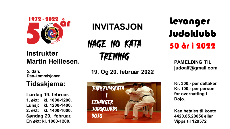 Levanger Judoklubb har egen Dojo og utøverne får adgangskort, og mulighet til å trene utenom ordinær treningstid. Utøverne ønskes lykke til i treningen framover. To uker senere, som en fortsettelse av kurset, gjennomføres en helg med nage no kata.