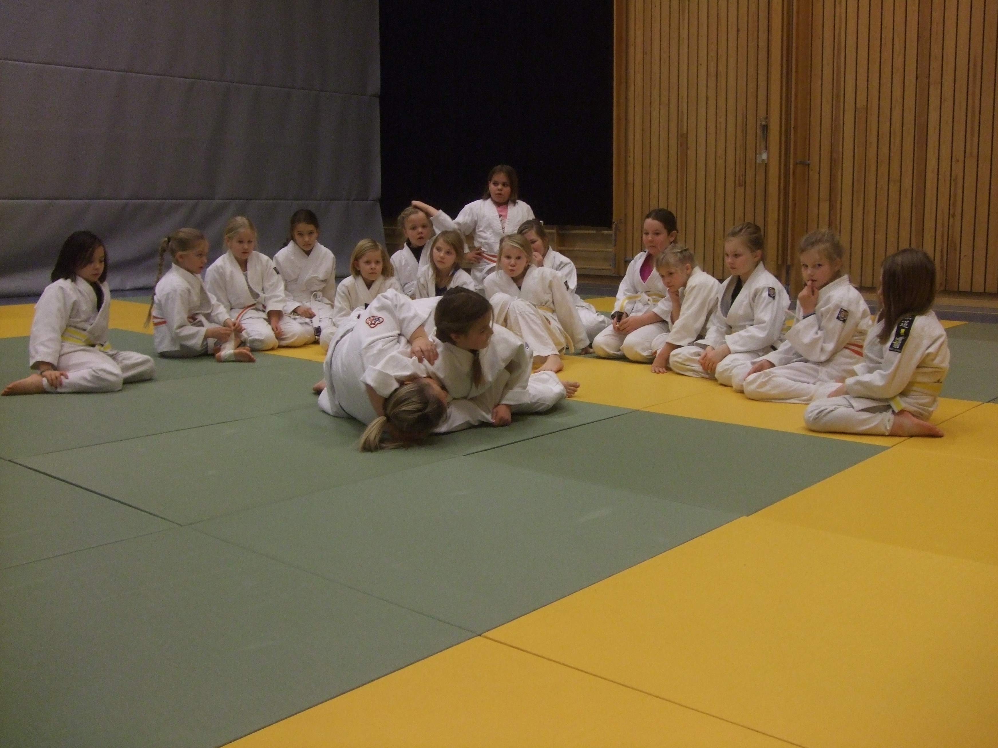 Om kvelden fredag den 11. januar sto vel førti jenter på lineup klare til to dager med judo sammen med andre jenter fra hele Trøndelag, fra Nærøy i nord til Trondheim i sør. Treningene ble ledet av Hege Aar (NJC) og Tonje Mathisen (TJKw). Fredagens trening hadde fokus på tachi-wasa, men det ble også litt leik innimellom. Vi ble delt opp i to grupper etter alder og erfaring, og fikk hver vår trener. Da ble det vist teknikker og gitt oppgaver som var passende for utøverne i gruppene. Kvelden ble avsluttet med kveldsmat og andre aktiviteter. Lyset ble slukket kl. 23.00.