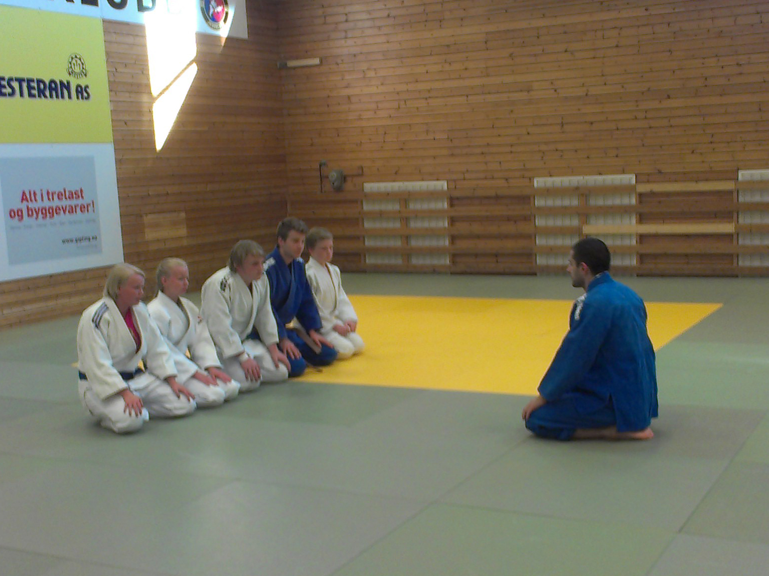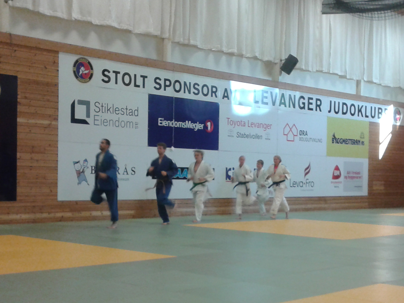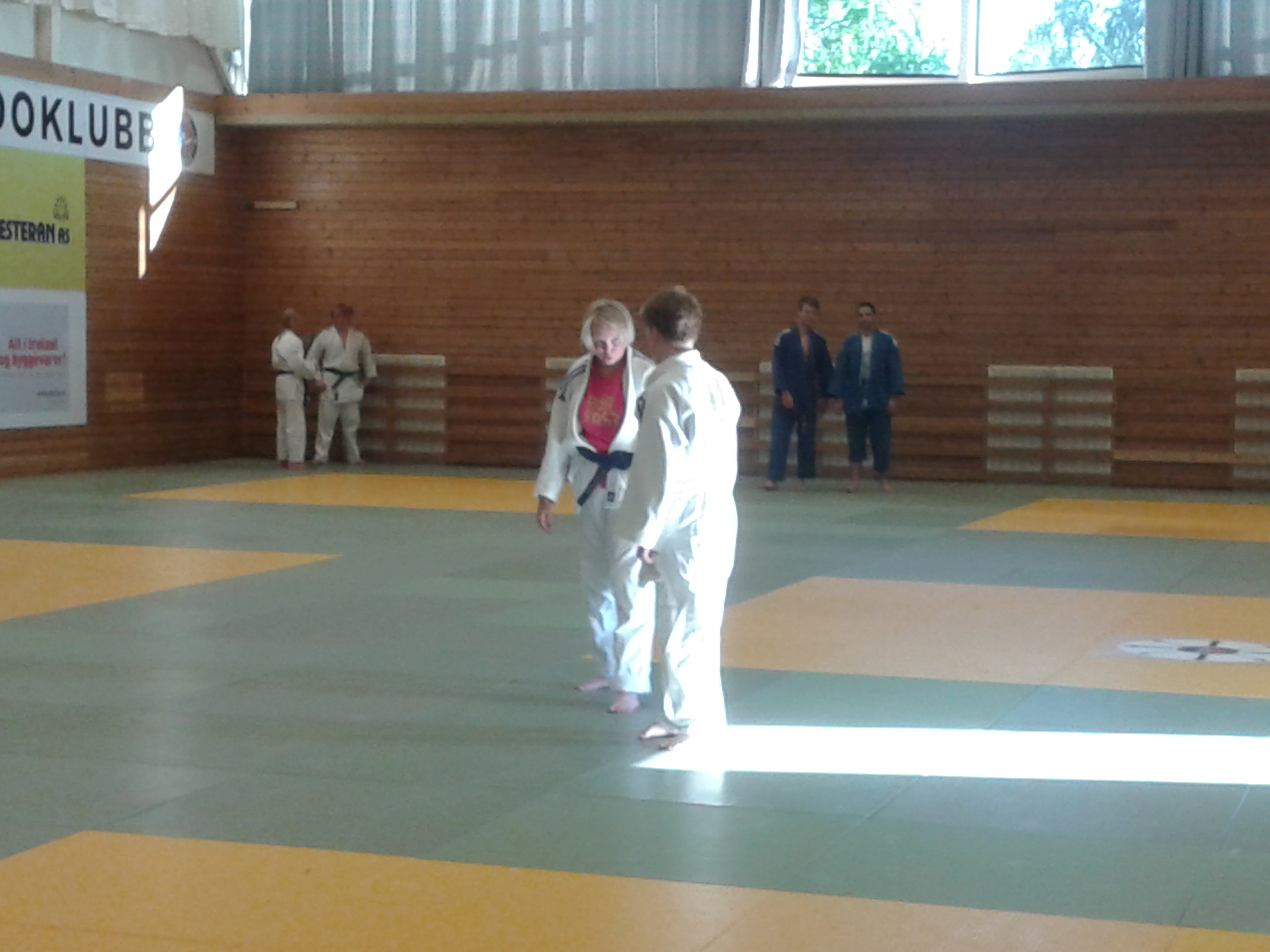 Tirsdag 22.7. hadde noen ivrige LJK-medlemmer møtt opp for å ta ei treningsøkt. -Det var ganske varmt å trene med 29 grader inne i hallen, forteller Ingebjørg Holbø. Dette var den første treningsøkta på nygolvet, og Benjamin Rajabi forteller entusiastisk om erfaringen: -Det var fantastisk å trene på golvet og jeg ble verken øm eller vond av å bli kastet. Jeg tror nok at kastefrekvensen vil doble seg nå.