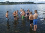 Torsdag 14.8. var det lagt inn bading i programmet på Sommerskolen. Men aller først var det vanlig oppstart inne i EiendomsMegler 1-hallen. Treninga preges av godt humør og deltakerne gjør stor framgang. Badinga var opprinnelig planlagt til svømmebassenget i Trønderhallen. Men bassenget er stengt grunnet reparasjon, og da bader man selvsagt i sjøen. Sjøen ved Levanger har holdt over 20 grader i lang tid, så det var ikke noe å si på temperaturen. I morgen avsluttes Sommerskolen med grilling i siste økt.