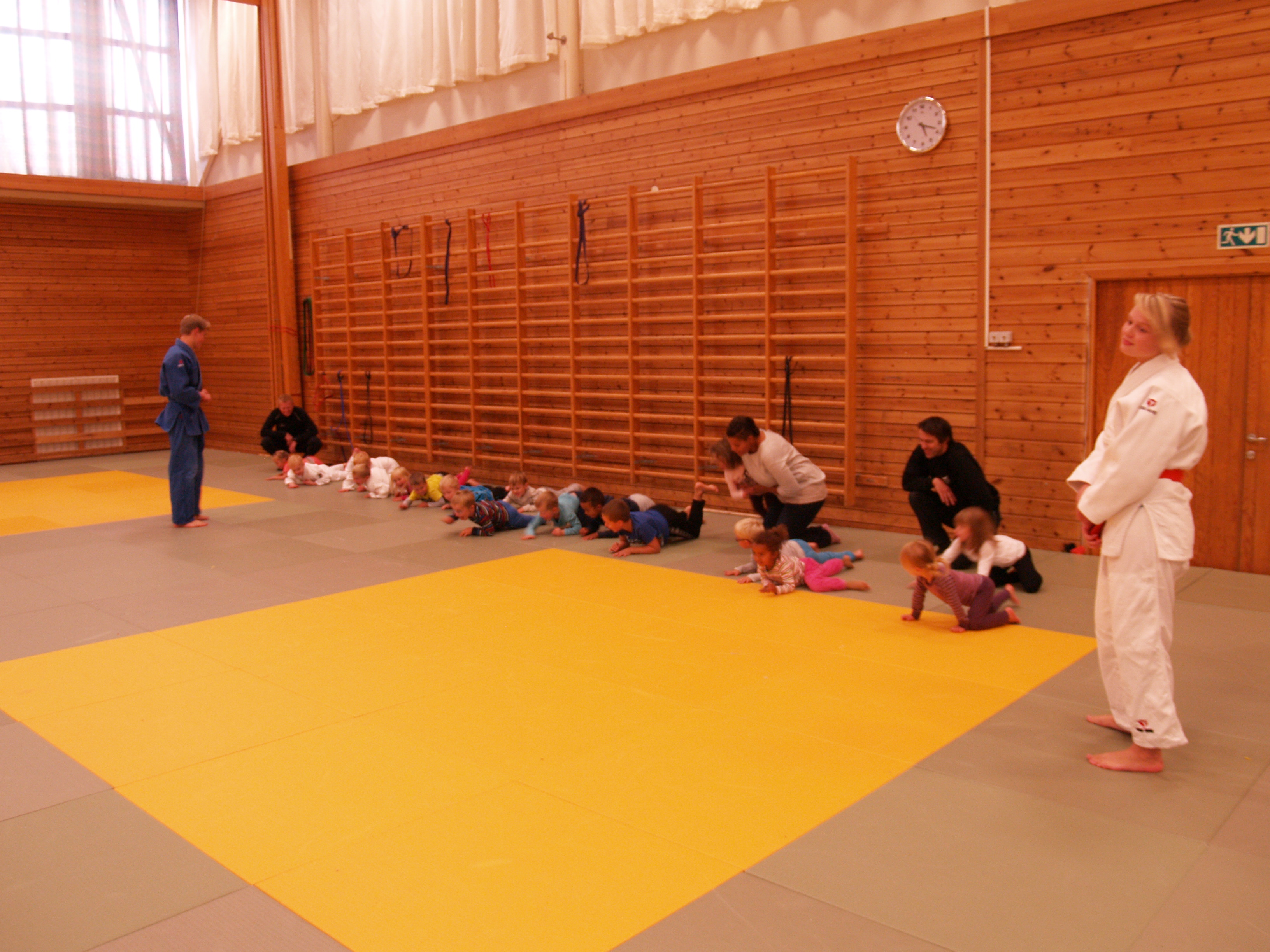 Mandag 22.9. gikk startskuddet for høstens knøttekurs. Hver mandag i 12 uker skal hele 50 barn i alderen 4-8 år få leike og ha allsidige aktiviteter med judo som basis. Knøttepartiet er delt i to der de yngste er ei gruppe og de som er hakket eldre er ei gruppe. Åpenbart var både foreldre og barn spent da de møtte fram i EiendomsMegler 1-hallen. – Jeg fikk nesten ikke i meg middag i dag, så spent var jeg, var det en av knøttene som fortalte.