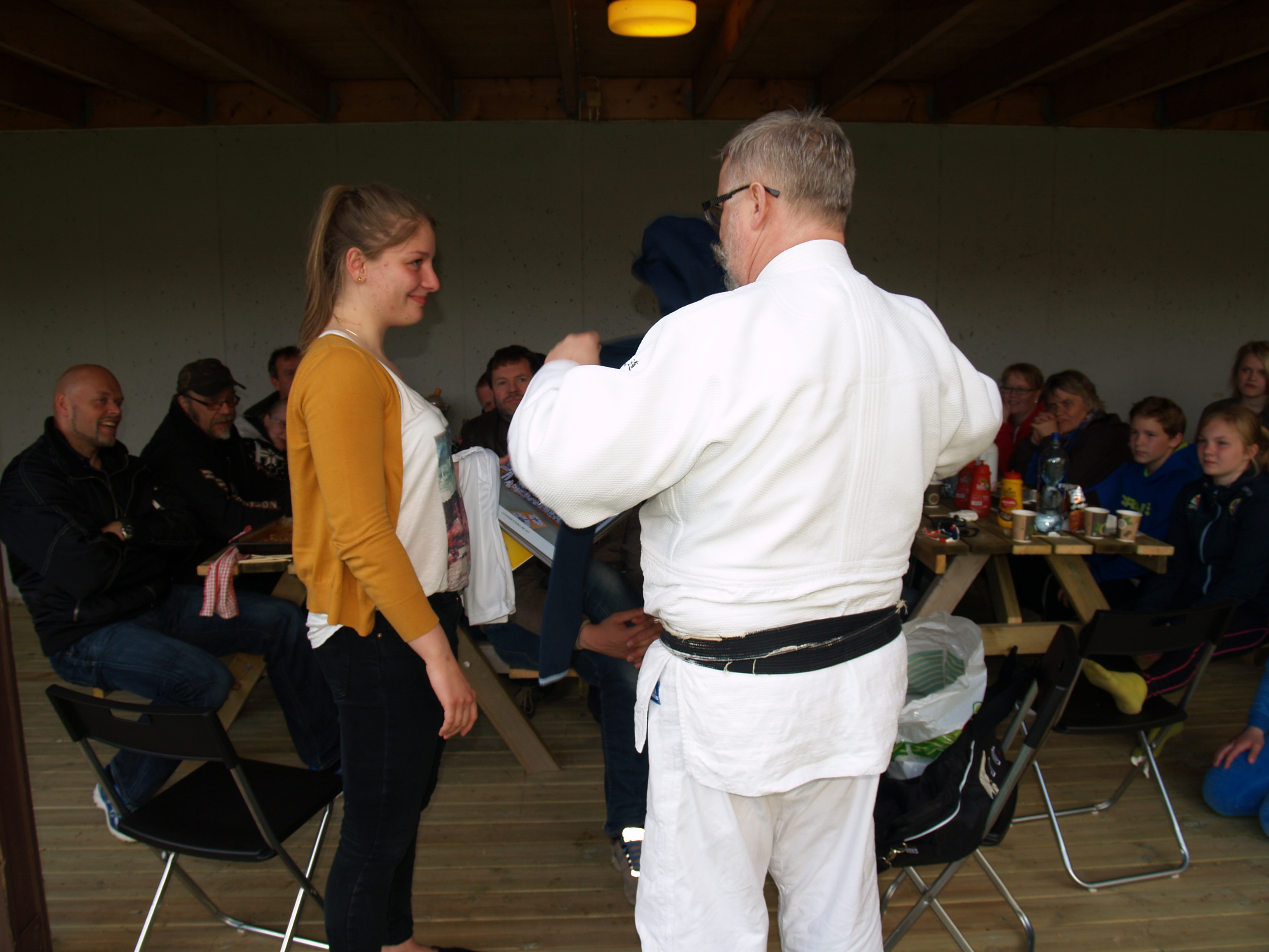 Avskjedsfesten ble innledet med at vi fikk informasjon om tilstanden til vårt medlem Julie Fjesme Sundby (14) som var utsatt for ei alvorlig trafikkulykke for noen uker tilbake. Inez Marie Lysne-Ness (14) hadde vært på sykebesøk: -Jeg ble så glad og positivt overrasket da jeg så hvor godt Julie så ut, fortalte Inez Marie. -Vi hadde en fin prat sammen og Julie var i godt humør. Ved neste sykebesøk skal Inez Marie ta med et kort med hilsning og gave fra klubben.