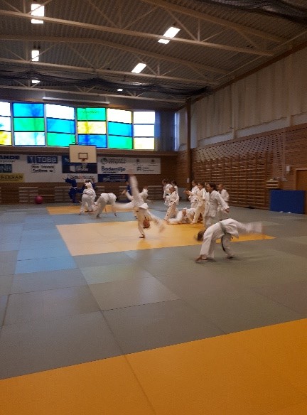 Første treningsøkt var i gang klokken 19.00 og etter en og en halv time med judo, ble det en rask dusj og kveldsmaten som var taco. Etter dette var det fri lek og moro og det var tydelig at man hadde energi igjen. Når klokken nærmet seg 23.30 var det på tide å få alle til ro, ikke like enkelt for alle.