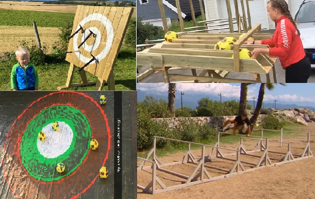 Øvelser du kan prøve: Ballkontroll, fotballcurling, øks- og knivkasting, frisbeegolf, kronidioten, pil og bue-skyting, 90-graderen, ballong over hodet, kulestøt og presisjonskast