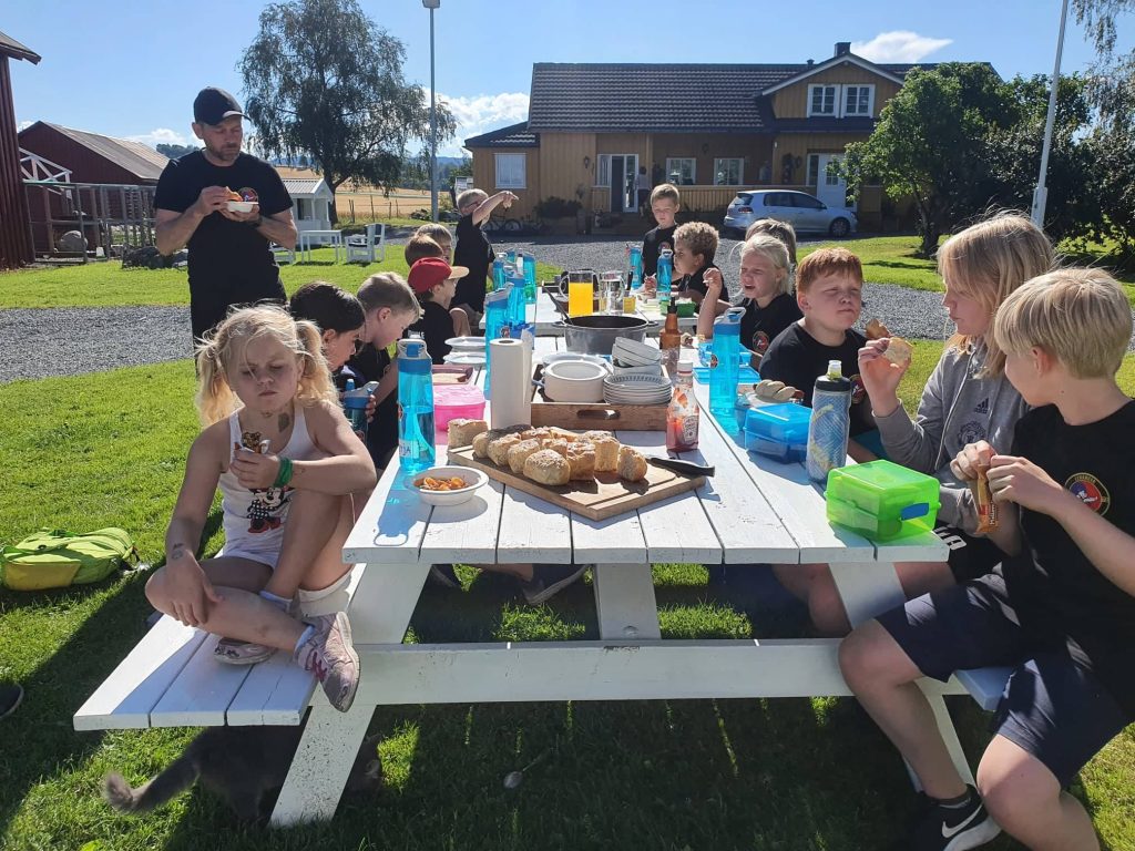 Levanger Judoklubb har vært så heldig å få økonomisk støtte til sommerskolen fra Levanger kommune, Samfunnsutbytte Sparebank 1 SMN og Norges judoforbund. Dette gjør at sommerskolen er gratis for deltakerne. Tirsdag 10.8. var det nok noen som var stive og støle etter gårsdagens trening, men det var bare blide ansikter å se. I tillegg til ei judoøkt formiddag og ei om ettermiddagen, var det utflukter midt på dagen. 1.-3. klasse dro på gårdsbesøk til Lykkens Prøve. Her fikk man se mange fine dyr, og det var mulighet for ponniridning og kjøring med vogn. For 4.-7. klasse gikk turen til Stadionparken. Det var mulighet for å utfolde seg på sparkesykkel og skateboard, i tillegg til roligere aktiviteter, som å gå på stylter eller tegne med kritt.