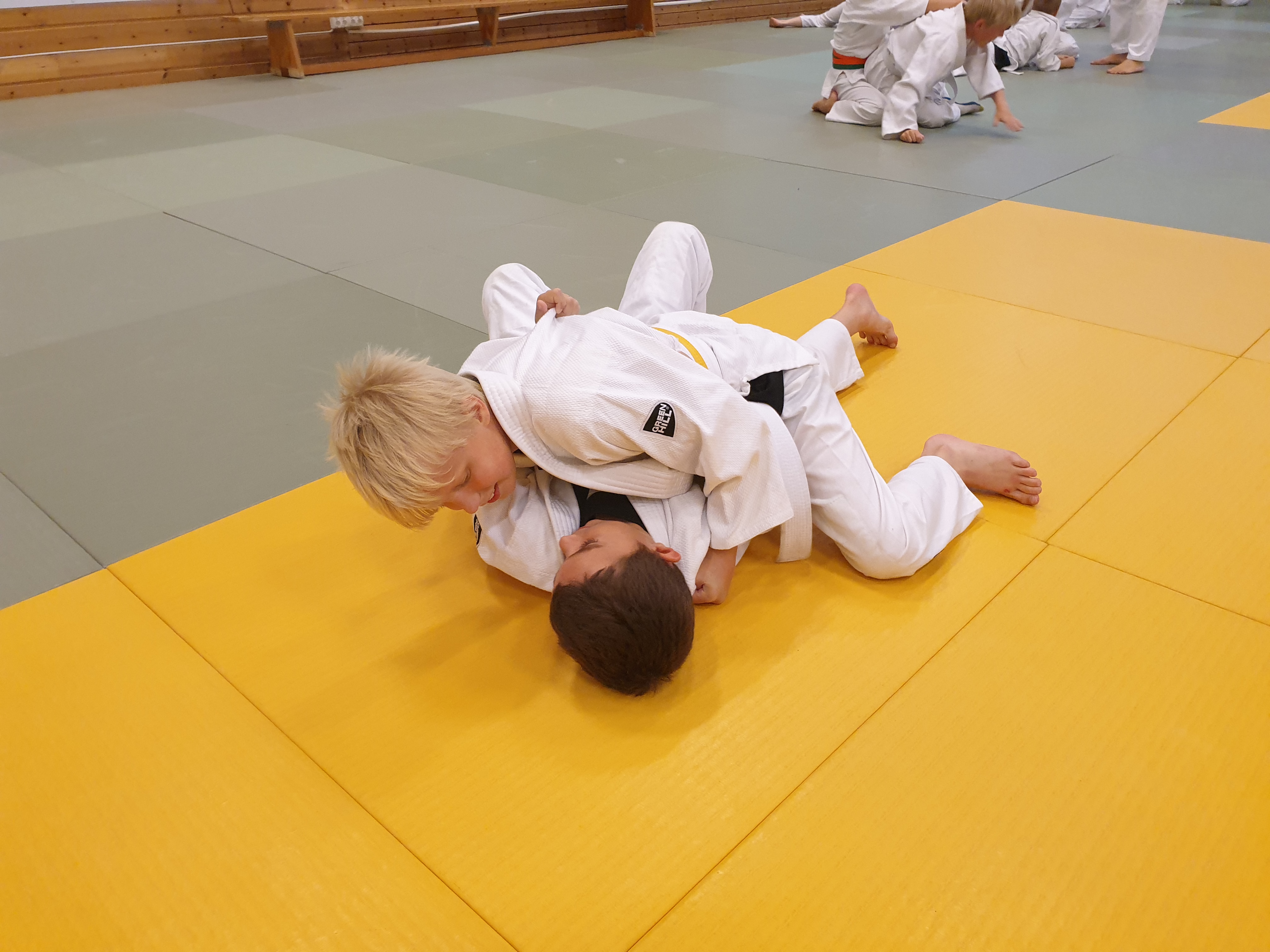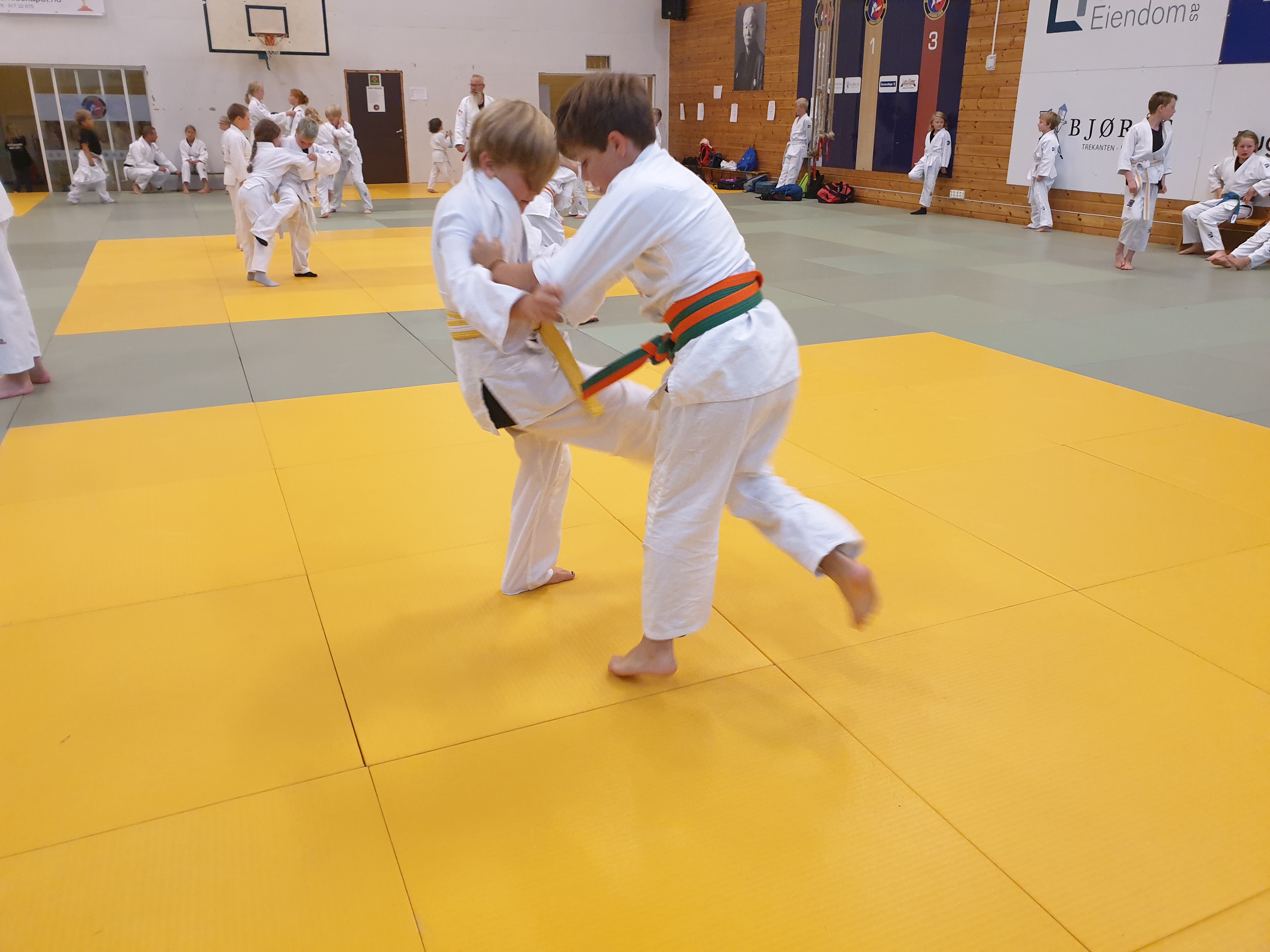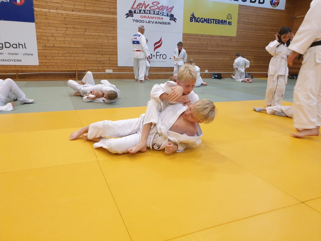 Med ti judotreninger på ei uke blir det merkbar framgang på teknikker og kampferdigheter. Fredag 13.8. var vi kommet til femte og siste dag på sommerskolen, og i første judoøkt ble det brukt mye tid på kamper, både stående og nede på bakken. Det var stor kampglød å spore, samtidig som det var tydelig at barna hadde forstått hvor viktig det er å ta hensyn til motstanderen: Ingen skal være redd for å bli kastet.