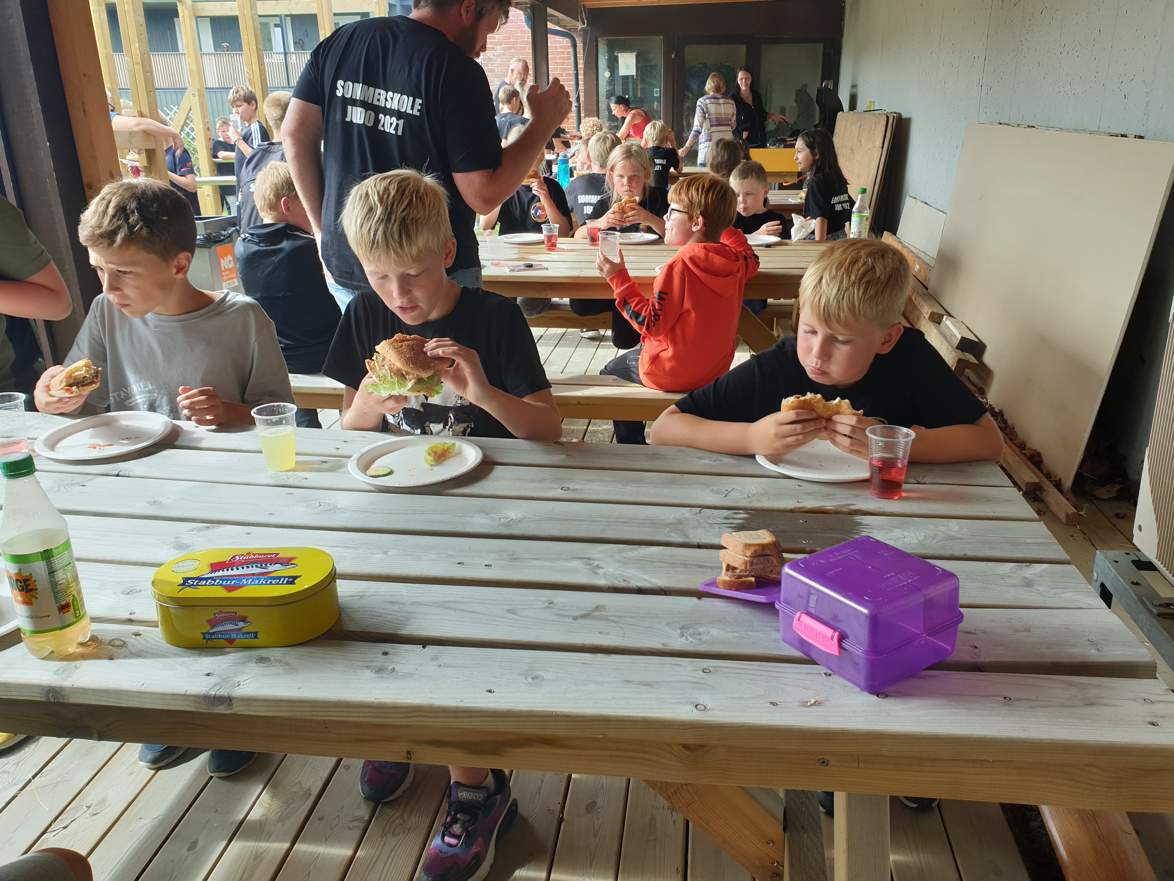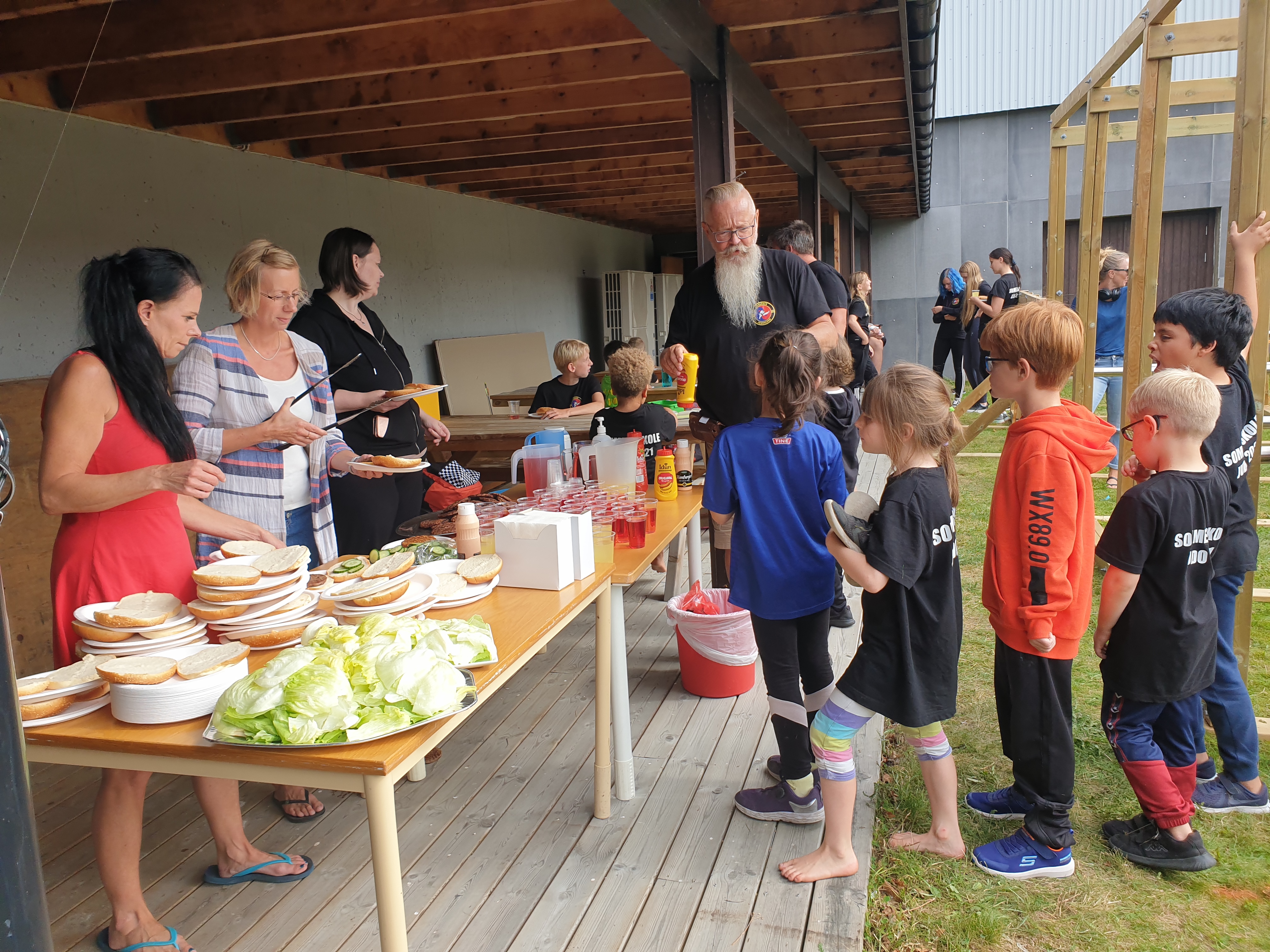 Tidsrommet mellom judoøktene ble brukt til Mesternes mester på plena utenfor hallen. Aktivitetene var hinderløypa «kronidioten», det var øksekast og ballsjonglering. Alle fikk prøvd seg på en innledende runde, og det hele ble avsluttet med finaler. Etter finalene var det tid for å spise grillmat. Hele uka har vi hatt verdifull hjelp på kjøkkenet av foreldre, og i dag var det grilling for 70 personer som tok mye av kreftene. Takk for hjelpa!