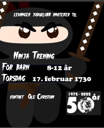 Torsdag 17.2. kl. 1730-1830 blir det Ninja-trening for nybegynnere og viderkomne barn. Det betyr at første treningsgruppe kan møte litt senere enn vanlig, mens andre treningsgruppe møter litt tidligere. Møt i judogi som vanlig. Det blir kiosksalg, og vi ønsker familie og venner som publikum. Velkommen!
