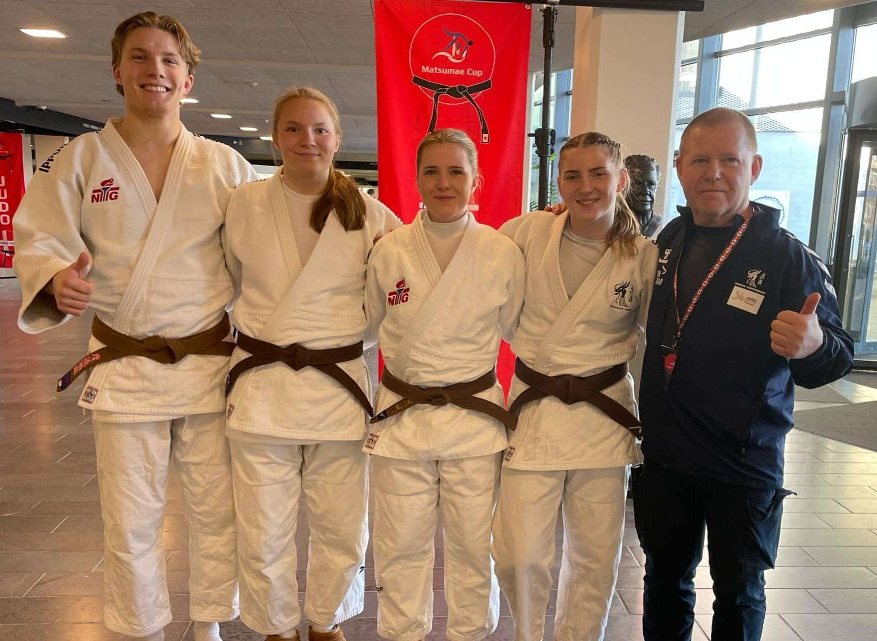 «Da har noen av utøverne til Levanger Judo & BJJ vært å sloss i Danmark 💪🇩🇰🇧🇻 Elise tar 3 plass i senior – 57 kg. Hun ble i tillegg leid inn av Danmark i lagkonkurransen. Der tok hun og det Danske laget sølv i en forrykende konkurranse. Laget fra Japan tok gull. Pernille gikk både senior og junior. Vant 2 kamper i junior men dessverre ingen medalje denne gang. Lina og Torjus gikk gode kamper men ingen kampseire denne gang. Matsumae / åpent dansk er ett stort arrangement med mange nasjoner og høyt nivå. Vi satser på flere medaljer neste gang, dette ble en god start på årets sesong for denne gjengen.»