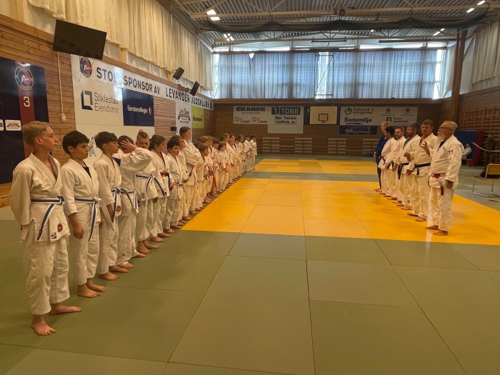 Det var også hele 15 stykk som graderte seg til gult eller halv-gult. Det er fantastisk å se at så mange er interessert, og virkelig flott at barne-partiene vokser igjen etter covid. Til høsten blir det et nytt nybegynner-parti, og da kommer vi også til å benytte oss av lillesalen. Vi synes det har fungert bra å trene sammen, videregående og nybegynnere. Det blir mer moro og lek, når partiet er litt større.
